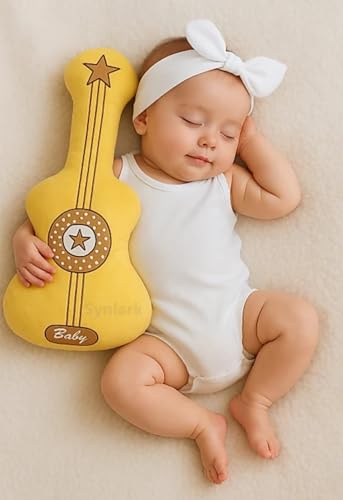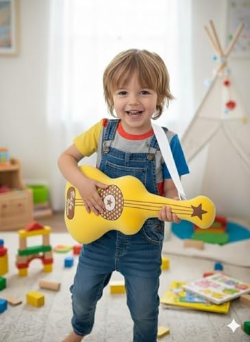 Introducing this delightful plush guitar pillow toy that brings together music, comfort, and playtime fun! Measuring 18 centimetres, this charming blue guitar-shaped pillow features adorable polka dot details and star accents that catch little ones’ attention. The soft, stuffed design makes it perfect for cuddling during naptime while doubling as an imaginative prop for pretend play. Complete with an adjustable shoulder band, young music enthusiasts can wear their instrument and move freely as they strum along to their favourite tunes. The lightweight construction and child-friendly size make it ideal for toddlers and young children to carry around. Whether used as a decorative cushion in the nursery, a bedtime companion, or a playroom accessory, this versatile plush guitar encourages creative expression and musical appreciation in little ones.