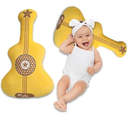 DESIGN FEATURES: Adorable guitar-shaped plush pillow in soft blue colour with polka dot pattern and star accents, perfect for imaginative play