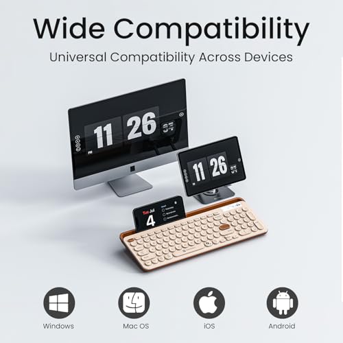 Portronics Bubble 3.0 Wireless Keyboard with Bluetooth + 2.4 GHz USB Receiver, Rechargeable Battery, Dual Height Adjustment, Multimedia Hotkeys with Numpad, for Laptop, PC, Smartphone, Tablet(Beige)