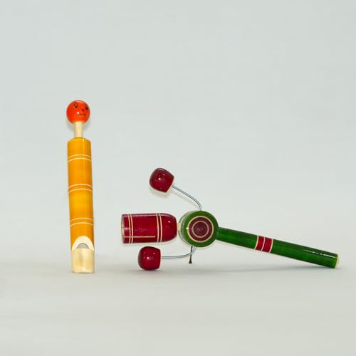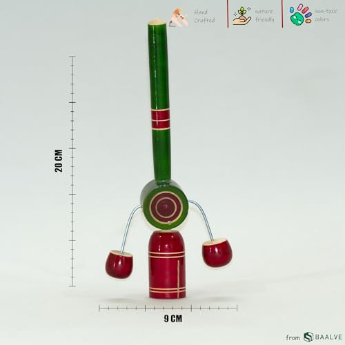 Rediscover the joy of old-fashioned play with the BAALVE handcrafted wooden toy set, a delightful combination of tradition, skill-building, and fun. This eco-friendly set includes a colorful whistle toy with a character head and a charming wooden acrobat toy that spins and moves when played. Designed with child-safe, non-toxic colors and crafted by skilled artisans, each piece celebrates Indian heritage through thoughtful craftsmanship and sustainable materials. The whistle not only entertains but also helps improve breath control and oral motor skills, making it ideal for early childhood development. The acrobat toy promotes hand-eye coordination and curiosity, encouraging children to explore motion and balance through hands-on play. Made using ethically sourced wood and finished with natural dyes, BAALVE toys are safe for little hands and the environment. With a legacy rooted in Indian tradition, this toy set offers a screen-free, engaging alternative that enhances fine motor skills, imagination, and cultural appreciation. Perfect as a gift or a keepsake, these toys are sure to bring smiles to both children and nostalgic adults alike.