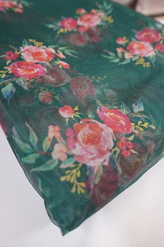 Floral Printed Organza FabricOrganza Foil Print Fabric Luxury Fabric Elegant Textiles Fashion for Dresses, Kurtis, Dupatta, Lehenga, Tops