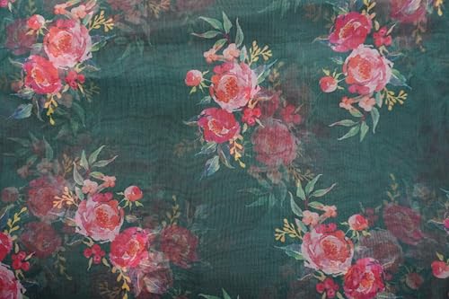 Floral Printed Organza FabricOrganza Foil Print Fabric Luxury Fabric Elegant Textiles Fashion for Dresses, Kurtis, Dupatta, Lehenga, Tops