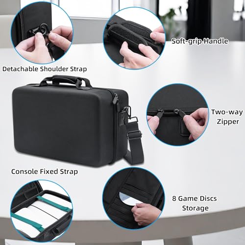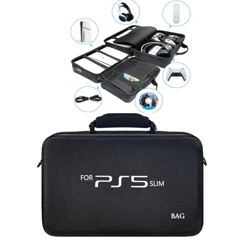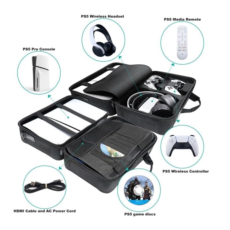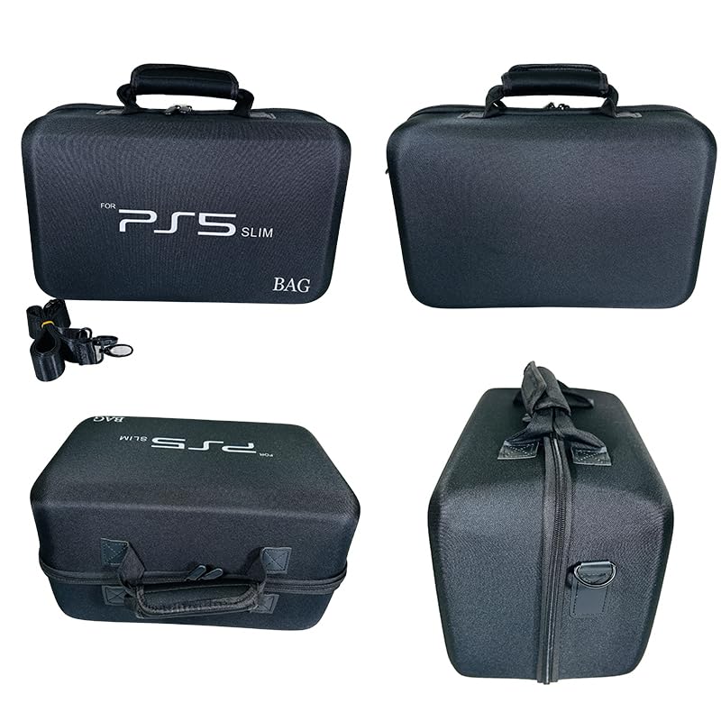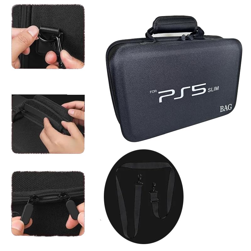 Compact and Portable: This travel bag for PS5 Slim is a briefcase-type carrying case with a waterproof exterior and shoulder strap for convenient portability.