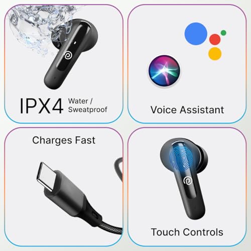 Control Music/Call thru Touch Sensors | IPX4 Water/Sweatproof Earbuds | Instant Access to Device’s Voice Assistant