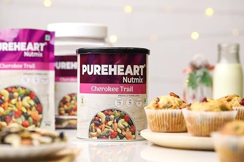 Pureheart Cherokee Premium Trail Mix | An Eclectic Mix of 8 Healthy Superfoods Nuts- Cashews, Almonds, Pistachio | Dry Fruits – Cranberries, Raisins | Seeds – Pumpkin, Sunflower | Reusable Jar (1000g)