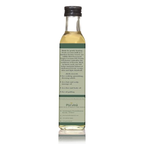 Handmade with love: Made using a traditional Kerala recipe passed down through generations, Purvina coconut oil is derived from the milk of 10 coconuts. It is made in small batches to preserve the authentic essence of Ventha Velichenna.