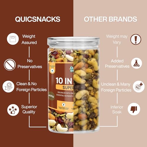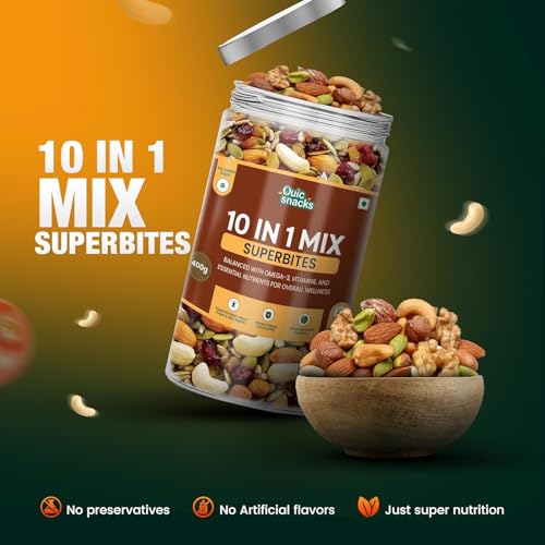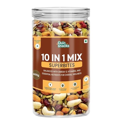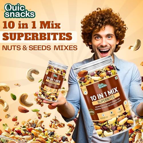 QuicSnacks 10 in 1 Mix Superbites Mix Seeds | Nuts and Seeds Mixes | Healthy Snack | Ready to Eat | Supports Heart Health, Boosts Energy, and Improves Overall Wellness (400gm)