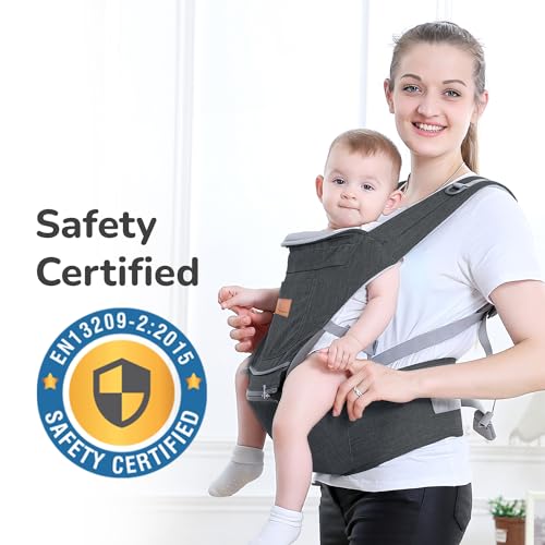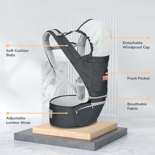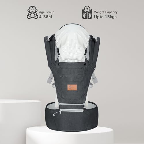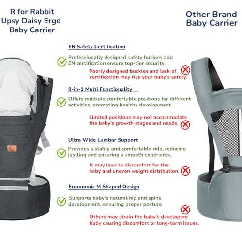 R for Rabbit Upsy Daisy Ergo Baby Carrier for New Born | 8 in 1 Hip Seat Front and Back Carry Position Adjustable Straps Kangaroo Bags for 4 to 36 Months Kids Upto 15 Kg (Dark Grey)
