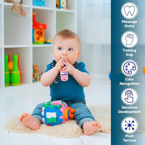 IDEAL BABY SHOWER GIFT: Our durable and cute silicone teether toy is the perfect gift for any baby shower, and it’s easy to use for new parents. It is also 100% safe teethers for babies as it is BPA-free and can be used as teethers for 6 to 12 months baby.