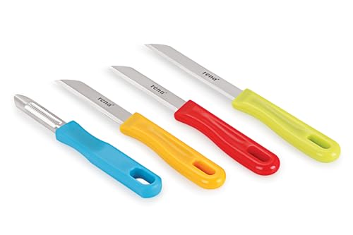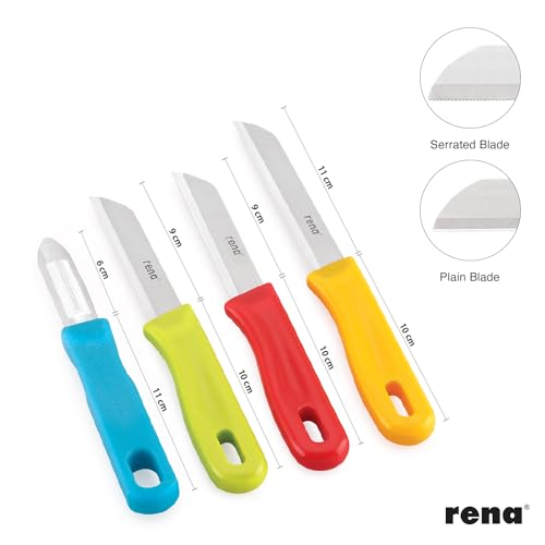 INCLUDES: 1 110mm Serrated Knife, 1 90mm Plain Knife, 1 90mm Serrated Knife, and Promo Peeler, a compact, functional combo to cover all your prep needs. 4 in 1 pack