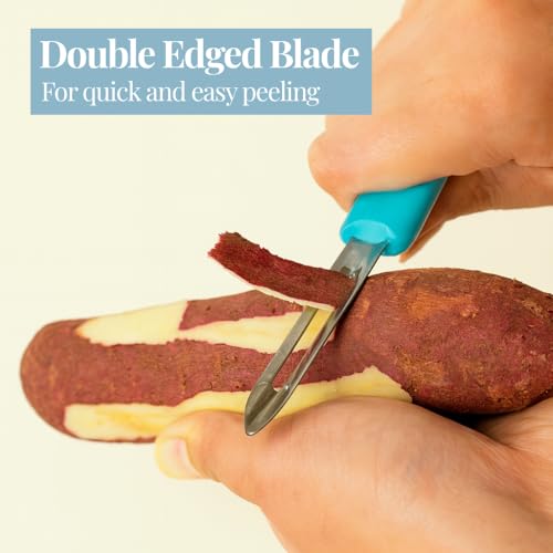 UNIVERSAL PEELER: Made from high quality stainless steel, this double edged kitchen peeler offers a long lasting sharp edge, ideal for smoothly peeling both soft fruits and hard vegetables with ease in everyday household kitchens.