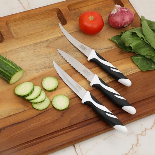 Ergonomic Soft Grip Handle – Built with a soft and anti slip grip, the handle ensures secure and comfortable use even during extended kitchen tasks. Its ergonomic shape reduces hand strain, providing full control for precision cuts. Whether you’re slicing fruits or dicing vegetables, the balanced grip makes cutting effortless and safe, ideal for both professional chefs and everyday home cooking use.