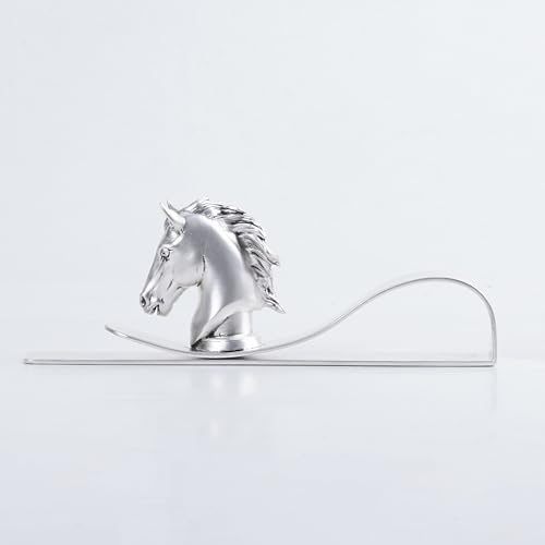 ELEGANT DESIGN: Silver-finished horse head bookmark with flowing mane detail mounted on a graceful curved base for sophisticated desk appeal