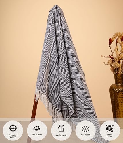 Lightweight yet cozy knitted throw blanket, ideal as a throw blanket for sofa, throw for sofa, and throw blanket for bed, suitable for all seasons.