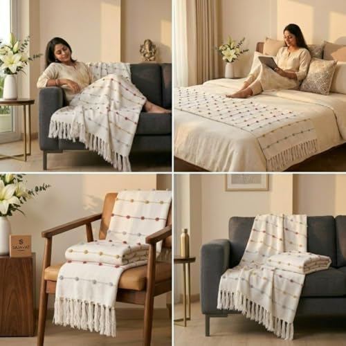 Premium Look with Tassel Details – Finished with elegant tassels and a subtle multi-tone pattern, it brings the feel of luxury throws for sofas into your home.