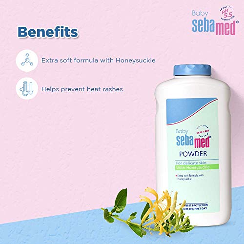 Baby Sebamed Powder with Honeysuckle is specially formulated for your baby’s delicate skin and it reduces the effect of rubbing & chafing. It absorbs extra moisture from baby’s skin to help skin feel comfortable. Gentle formula with Honeysuckle helps to keep the baby’s delicate skin healthy and soft. Pleasant botanical fragrance