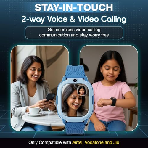 [HD Video Call & Family Chat] Insert a Nano SIM (Airtel/Vodafone/Jio) and let kids make 2-way HD video/audio calls. Stay connected through family group chat and ensure safety with the one-click SOS button.