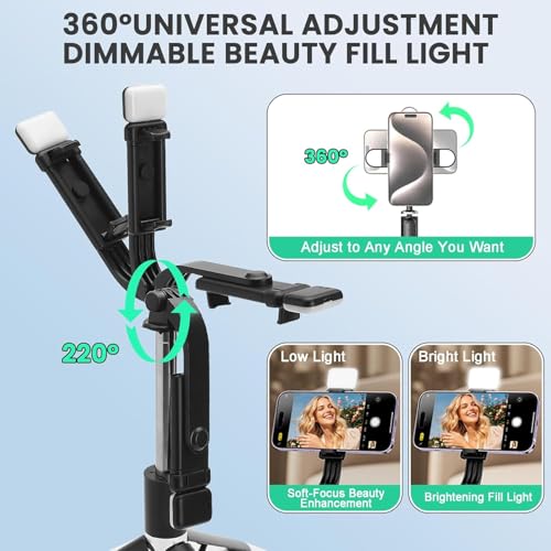 Enhance your video recording and YouTube live streaming with the AMBLIC tripod mobile holder. Built-in LED lighting improves selfies, vlogging, and video calls, delivering clear results in any lighting condition.