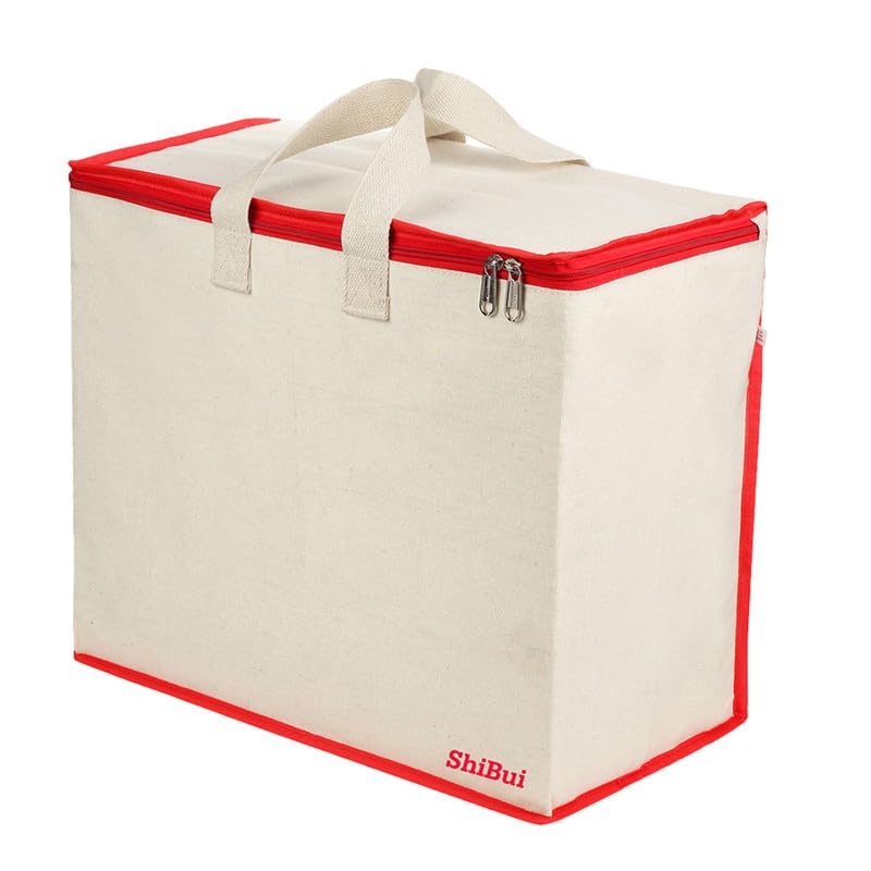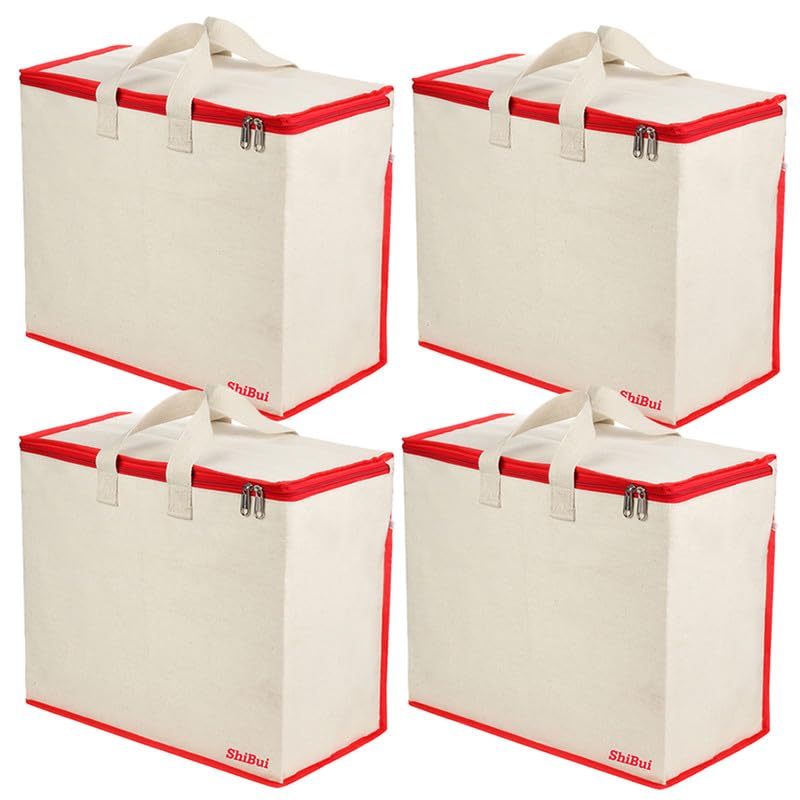 SHIBUI Canvas Reinforced Cotton Handles with Multipurpose Clothes Storage Organizer & Grocery vegetable shopping and Covers Zip Bags.