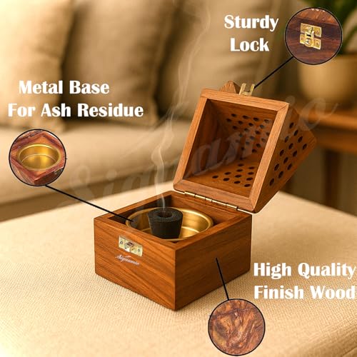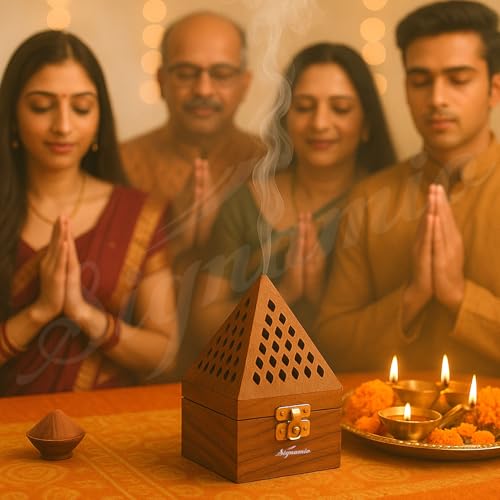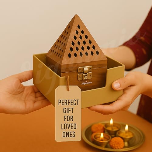 Introducing the Signamio Wooden Sambrani Dhoop Stand Incense Holder, an exquisite addition to your collection of pooja room decoration items and essential puja accessories for your home mandir.