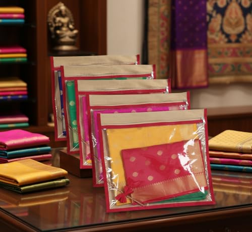 ✔ Transparent Front for Easy Viewing Clear PVC window lets you quickly identify the saree inside without opening the cover—perfect for daily use and organized wardrobes.
