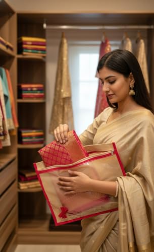 ✔ Ideal for Storage, Travel & Gifting Perfect for organizing your wardrobe or for safely carrying sarees for weddings, functions, or travel. Also ideal for gifting sarees in an elegant way.