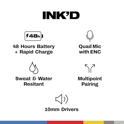 Everyday Durability – Built sweat- and water-resistant, INK’D is designed for workouts, commutes, and all-day comfort with intuitive touch controls and Type-C fast charging.