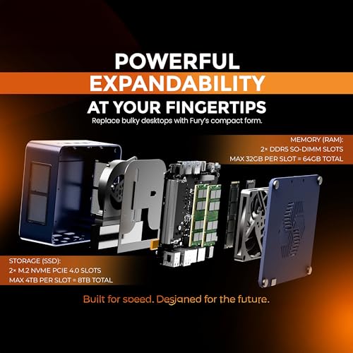 The FURY Mini PC redefines compact computing. Driven by the flagship AMD Ryzen 7 7840HS, it delivers desktop-level power for gaming, creation, and 8K media. Features a complete, advanced I/O: USB4 (8K support), ultra-fast Dual 2.5G LAN, Wi-Fi 6E, HDMI, DP, and multiple USB ports