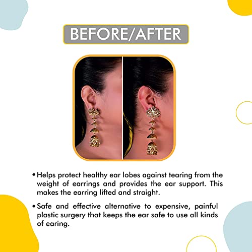COMFORTABLE AND LONG-LASTING : SlickFix Ear ear stickers are made from high-quality, skin-friendly materials that ensure a comfortable and irritation-free experience. The adhesive used is gentle on the skin but provides a secure hold, ensuring the earlobe supporter stays in place throughout the day. You can wear them for extended periods without any discomfort.