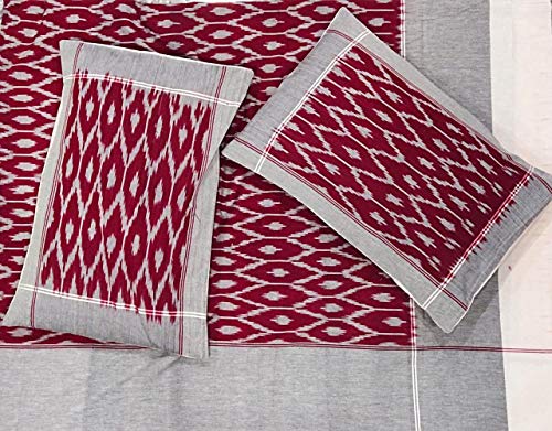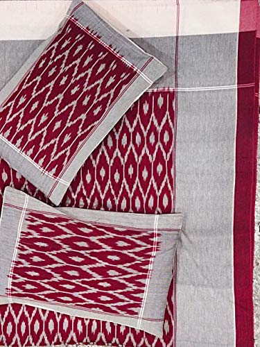 Pochampally Ikkat Hand Woven 100% Cotton Double Bedsheet with 2 Pillow Covers Muliti colour pure cotton handloom bedsheet King Size (7.5*9 feet) (90*108 inches)
