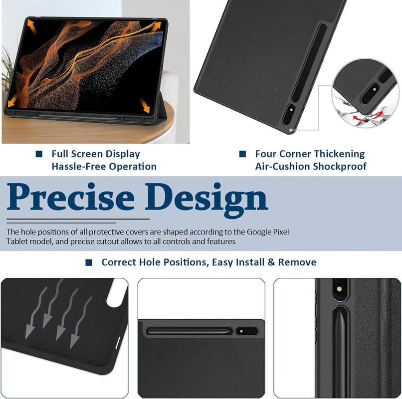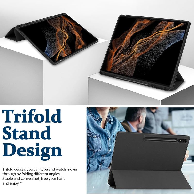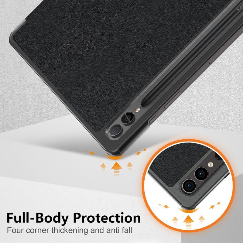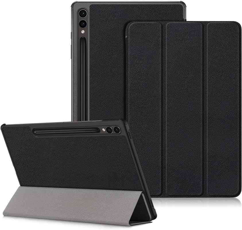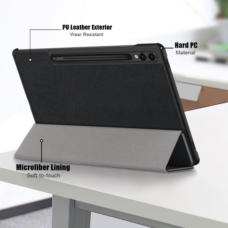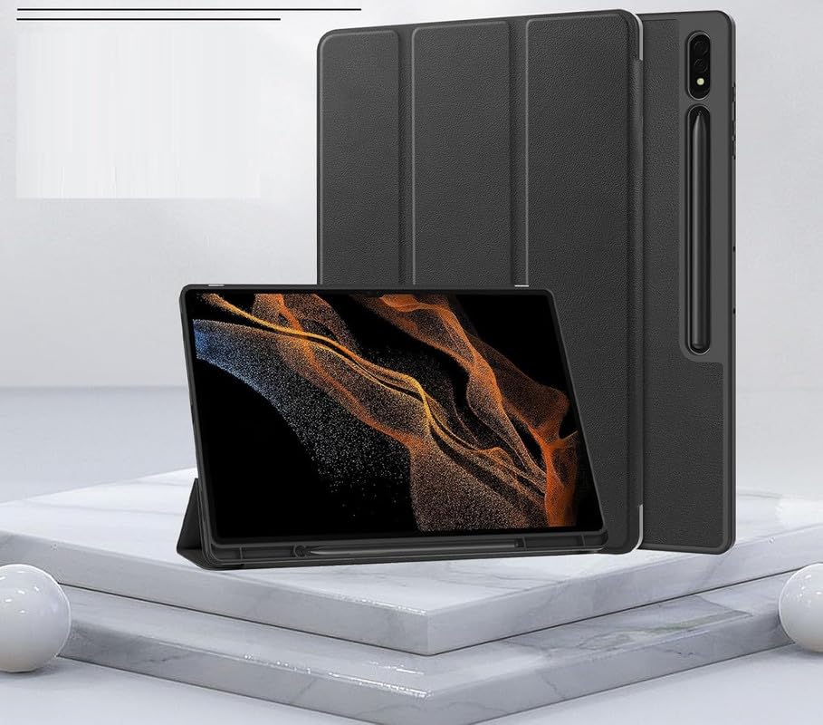 Smart Flip with Pen Holder Protective Tablet Cover for Samsung Galaxy Tab S9 Ultra (Magnetic PU Leather, Black)