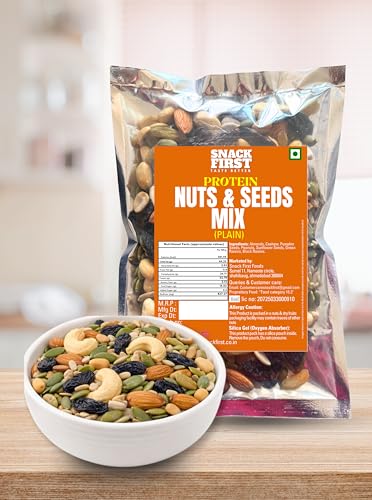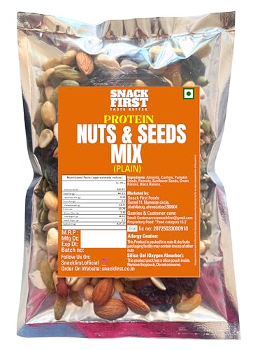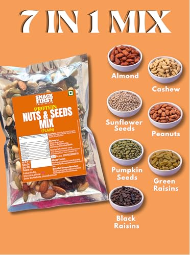 Snack First Protien Nuts & Seeds Mix (Trail Mix) 400G| Dry Fruit mixture | Mixed Dry Fruit & seeds | Almonds | Black Raisins | Cashewnuts | Pumpkin Seed | Sunflower Seed |Peanuts | Green Raisins | 7 In 1 Super Foods | Vitamin E | High protein | Healthy Snack, Gym Snack |