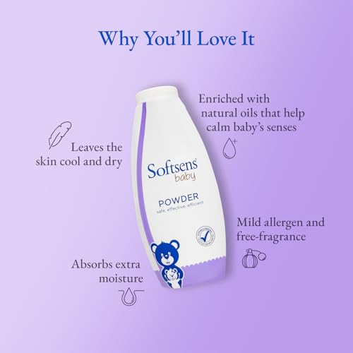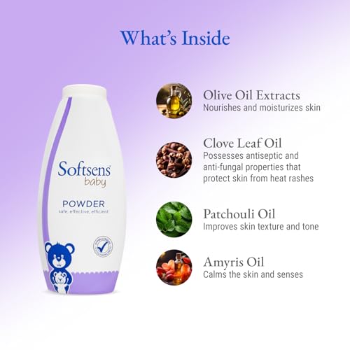 Softsens Baby Powder|Enriched with Patchouli & Olive|Soothes & Moisturises Baby’s Skin|Mild,Dermatologically Tested,Hypoallergenic & Paraben-Free|