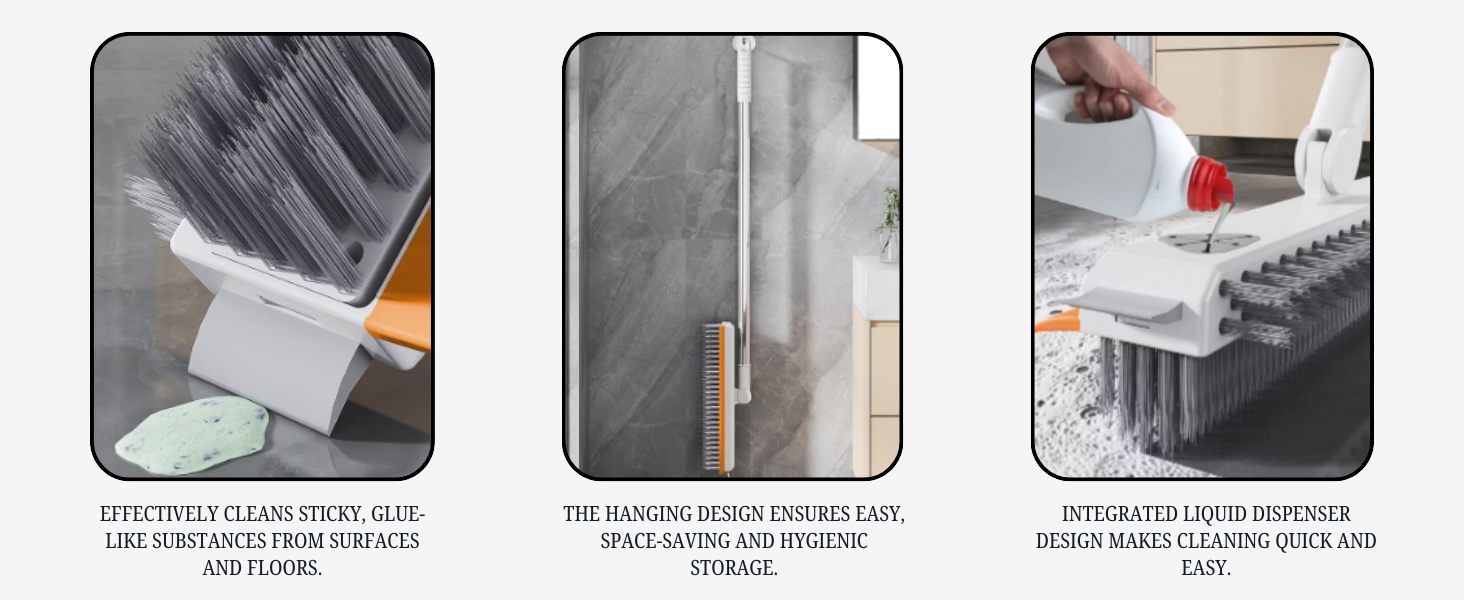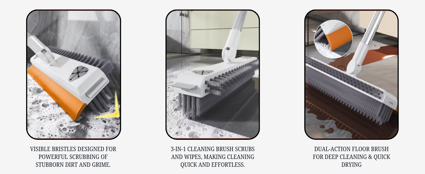 3-in-1 Multipurpose Cleaning Brush: This versatile brush is ideal for wiping, scrubbing, and sweeping various surfaces, including bathroom floors, tiles, and kitchens. Save time and effort with this all-in-one cleaning tool.