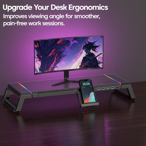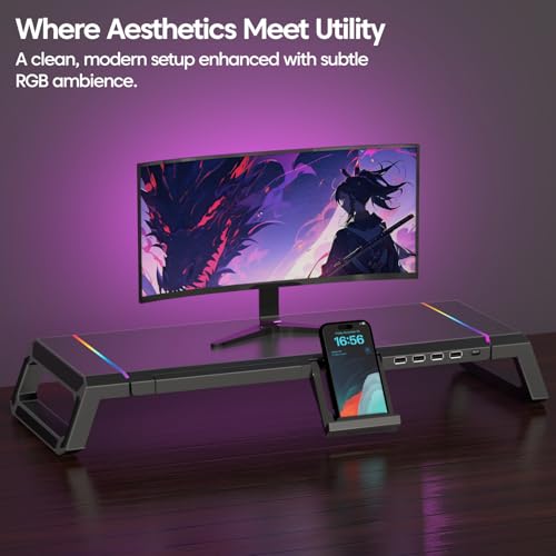 ✅ [Dynamic RGB Lighting Feature] :- Enhance the aesthetic appeal and ambiance of your home or office desk with the integrated, customizable RGB lighting system. This feature adds a modern, dynamic flair to your setup, allowing you to personalize the look of your workspace to match your mood, preference, or existing décor. This touch of ambient light not only looks visually striking but also complements the ergonomic and organizational benefits, creating a highly functional and inspiring environment for both professional work and creative pursuits.