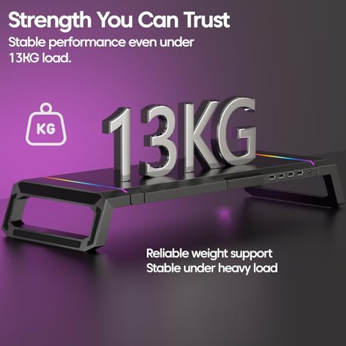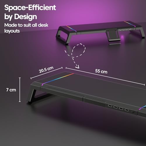 ✅ [Durable Premium Construction] :- Crafted from a high-quality combination of aerospace-grade Aluminum and sturdy ABS Plastic, this stand is built for longevity and robustness. Its heavy-duty design allows it to bear the weight of virtually any standard monitor, laptop, or desktop computer, alongside additional desk accessories and gadgets. The structure is inherently durable and arrives fully assembled, meaning no complex installation steps are necessary; it is ready to use straight out of the box to instantly upgrade your workspace.