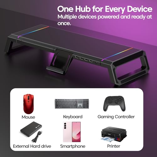 ✅ [Integrated 4-Port USB Hub] :- Revolutionize your desktop connectivity with the integrated hub featuring four high-speed USB ports. This allows for both efficient data transmission and simultaneous charging of various devices, including smartphones, tablets, external hard drives, printers, and essential peripherals like wireless mice and keyboards. This centralized power and data solution helps to eliminate cable clutter, keeping your workspace streamlined, tidy, and ensuring all your devices are conveniently connected and readily accessible for immediate use.