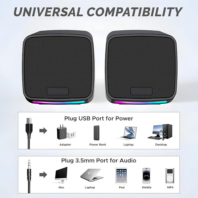 VERSATILE COMPATIBILITY: Works seamlessly with desktop computers, laptops, and other devices with standard audio output.