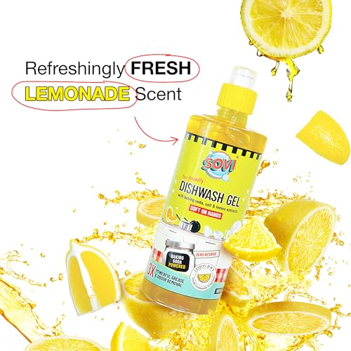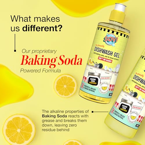 LEAVES NO CHEMICAL RESIDUE: SOVI Dishwash Liquid Gel is a powerful, grease-cutting formula that leaves your dishes squeaky clean without leaving any residue on your dishes. Proudly formulated and MADE IN INDIA.
