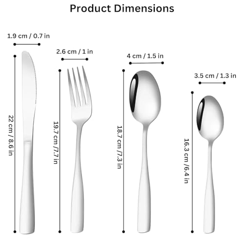 Stainless Steel Flatware Set includes knives, forks, and spoons designed for everyday dining at home, in kitchens, or in restaurants. Made from stainless steel, the utensils are durable, rust-resistant, and easy to maintain.The mirror polish and satin finish provide smooth surfaces that are comfortable to hold and easy to clean. Each utensil features a simple ergonomic design for safe and practical use. Dishwasher safe and reusable, the flatware set is suitable for various meals, including soups, desserts, and beverages. Compact and easy to store, this set supports organized dining and adds a minimal decorative touch to table settings.