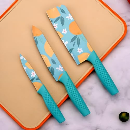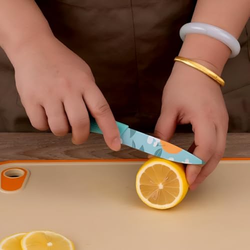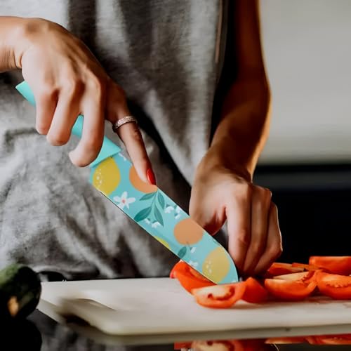 Each knife features a unique non-stick color coating that prevents food from clinging and simplifies cleaning. Helps reduce cross-contamination by easily distinguishing between uses with vibrant blade colors.