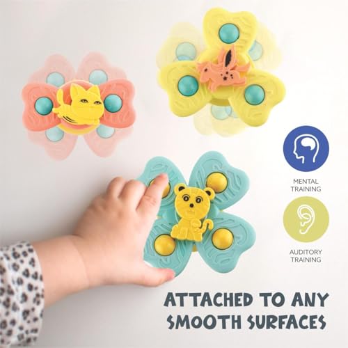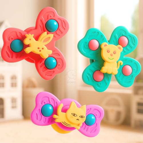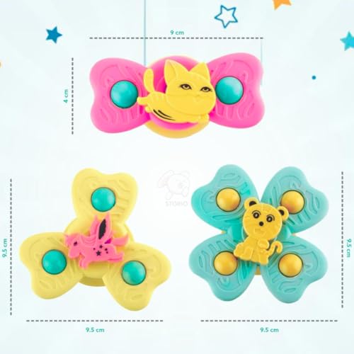 VERSATILE TOY SET: Set of 3 spinner toys perfect for bath time, car rides, and sensory play – suitable for toddlers and infants aged 3 years and up