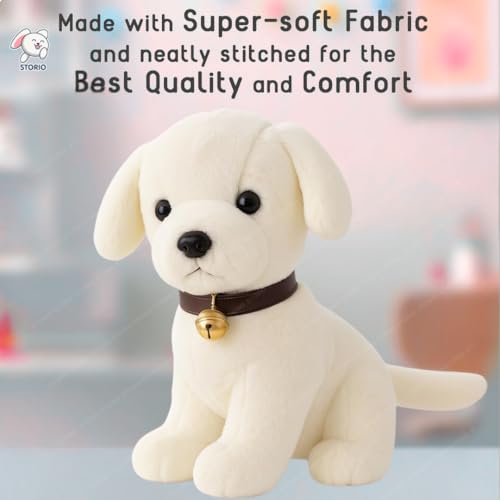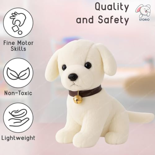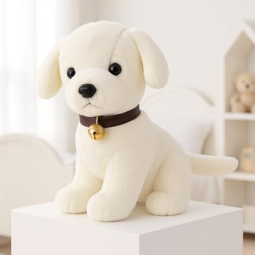 DESIGN FEATURES: Adorable white puppy plush toy with realistic features, soft fur, and a charming brown collar with golden bell accent