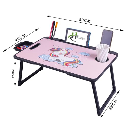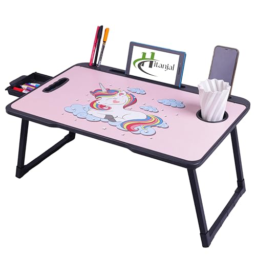 LARGE BED TRAY?- The size of this laptop desk is :23??x16? ,17 inch laptop is a piece a cake. Enough room for you to place large size laptop or books when you struggles in the homework, and desktop card slot and cup slot design make it easy to place on your phone, iPad, books and cups.