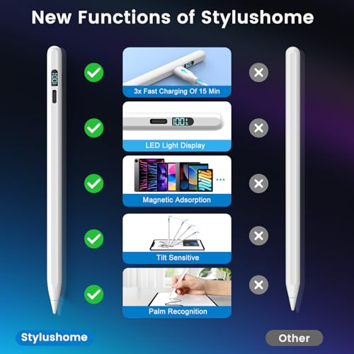【Palm Rejection & Magnetic Attraction】No need to wear anti-friction gloves! You can rest your hand on the screen without worrying about accidental touches anymore. The upgraded built-in magnet in the pencil for iPad offers stronger attraction than the original Pencil, which firmly attaches to the side of the iPad, including the iPad 10 (which is a unique feature that other styluses do not offer)! This enables easy portability and prevents the stylus from slipping or getting lost.