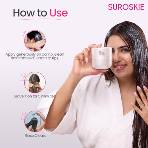Ditch the salon appointment and unleash your inner hair goddess at home with Suroskie’s REVIVE & DEFEND Instant Glass Hair Mask. This luxurious Korean-formulated mask, crafted by haircare experts, delivers salon-worthy results in just one use. Repair up to 40% of damaged hair and experience a transformation – irresistibly smooth, strong, and shiny locks await. A potent blend of Hydrolyzed Keratin, Collagen, Wheat Protein, and soy protein deeply nourishes and strengthens hair from within. Shea Butter, Murumuru Butter, and Almond Oil create a moisture marvel, replenishing lost hydration and leaving hair silky-smooth and luxuriously soft. Dryness? Gone. Breakage? Bye-bye. Frizz? No more. This mask tackles your hair woes head-on, leaving you with smooth, polished hair that feels as good as it looks.