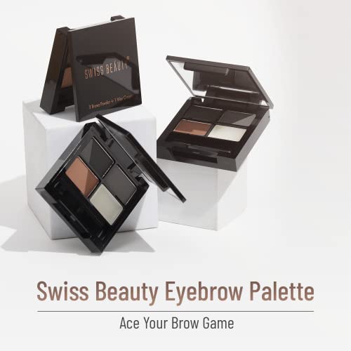 Give your sparse and thin eyebrows a new makeover with our Swiss Beauty Eyebrow Palette. The palette consists of 4 shades, including a clear wax to shape and set your eyebrows, a base shade and 2 tones of brown to fill in your eyebrows and give them a defined look. From subtle definition to bold statements, our eyebrow palette is your go-to for flawless brows that wow. Comes in powder formula, it blends seamlessly and creates an illusion of thicker and fuller eyebrows and enhances your eyebrow game. It comes with an applicator brush that defines and fills your brow precisely. Also, our eyebrow palette is cruelty-free and vegan, meaning neither tested on animals nor contains any animal extracts.Whether you’re aiming for an everyday natural look or dramatic Instagram-worthy brows, our eyebrow palette has got you covered. So say goodbye to bad brow days and hello to perfectly groomed brows with our must-have eyebrow palette.