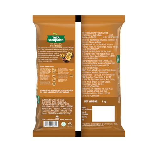 Tata Sampann Fine Besan made from 100% unpolished chana dal is all you need in the kitchen to enjoy an all-natural, authentic taste of in all your favourite recipes. It lets you indulge in dishes like besan ladoo, dhokla, kadhi, fafda, sev and other namkeens. Recommended by Sanjeev Kapoor, Tata Sampann Besan undergoes a 5 step purity process to ensure that besan in every packet you buy is uniform and of premium quality. Karo Goodness ki Shuruaat!