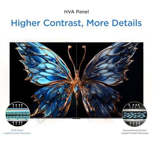 Display: 4K UHD QLED Panel | HDR 10+ | AiPQ Processor | Dolby Vision Atmos | HVA Panel | 178 Degree Wide Viewing Angle | Micro Dimming | Metallic Bezel-Less Design | MEMC 60 Hz