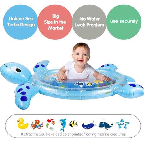 【Fun Tummy Time Toys for Babies】- Your little baby attention will be attracted by the vivid sea world and bright coloured cute floating animals, even try to grab the fish inside the water mat. Just let your baby have hours fun play time to improve their hand-eye coordination.